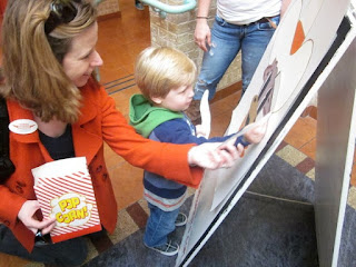 This year for Explore UT, which took place on March 5th, Texas Spirits participated in the Texas Exes "Horns Homecoming" that took place in the Texas Exes Alumni Center. The Spirits booth featured a Pin-the-Horns-on-Bevo game that was fun for all ages. Other booths involved in the Horns Homecoming included face-painting and balloon animals. Spirits had a blast playing with kids this afternoon and helping them play the game. Hook 'Em even wanted to take a try (see below)!
